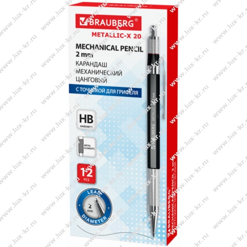 Карандаш механический цанговый 2 мм, HB, BRAUBERG "METALLIC X-20", металлические детали, 181976