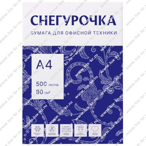Бумага Снегурочка, Сыктывкар (А4, 500л, класс С, 80г/м2, белизна 148%, яркость 95%), в пачках