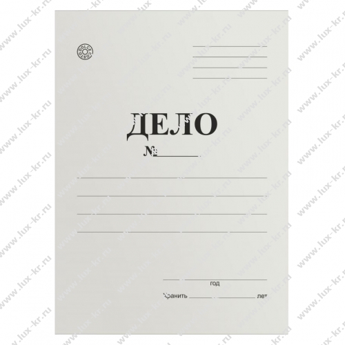 На внешней стороне обложки папки есть название папки "Дело №" с возможность написания номера дела и поля для нанесения надписей. Поля расположены в правом верхнем углу и в центре обложки. В нижней части обложки есть возможность указать срок хранения папки.
