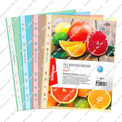 Папка-вкладыш с перфорацией Berlingo, А4, 35мкм, матовая, цветная, ассорти в пачке