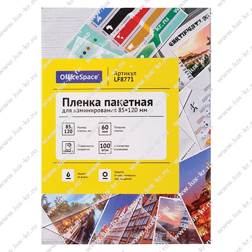 Пленка для ламинирования 100л 85*120мм, 60мкм