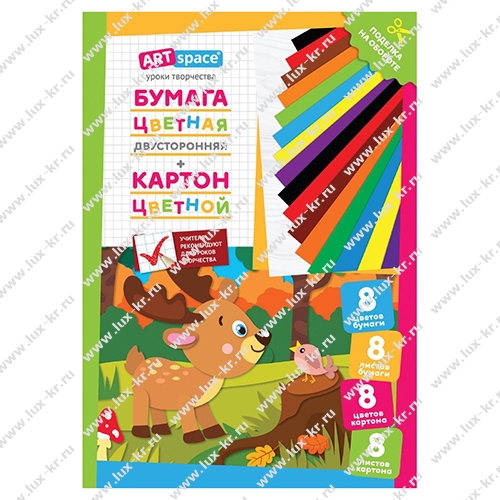 Набор А4 цв. немел. картона, 8л., 8цв. и цв. двустор. газет. бумаги, 8л., 8цв., ArtSpace "Олененок", в папке