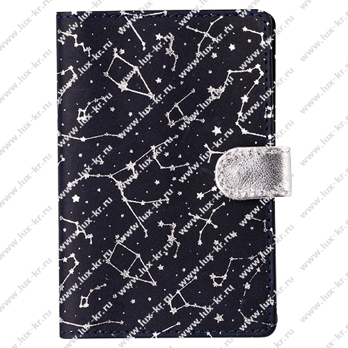 Обложка для паспорта OfficeSpace "Shine" на кнопке, кожа, темно-синий, тиснение фольгой 311097