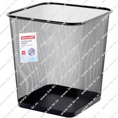 Изготовлена из металлической сетки черного цвета. Объем – 17 л. Легкость и компактность корзины позволяют перемещать её с одного места на другое. Квадратная форма позволяет удобно разместить корзину под рабочим столом.