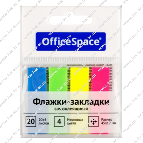 Флажки-закладки OfficeSpace, 45*12мм, 20л*4 неоновых цвета, пластиковые РМ_54064