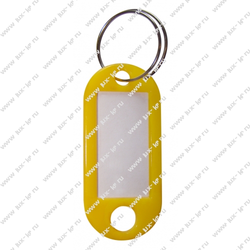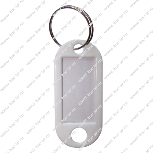 Пластиковый брелок с бумажной вставкой для записи.