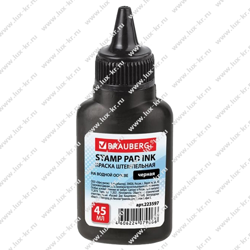 Краска штемпельная BRAUBERG223597, черная, 45 мл, на водной основе