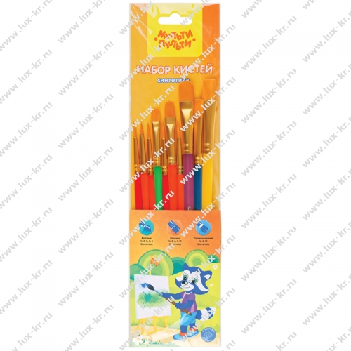 Набор кистей Мульти-Пульти 10шт., синтетика, № 2, 3 круглые; № 3, 6, 7, 12 плоские; № 10, 3 плоскоовальные SB_37585