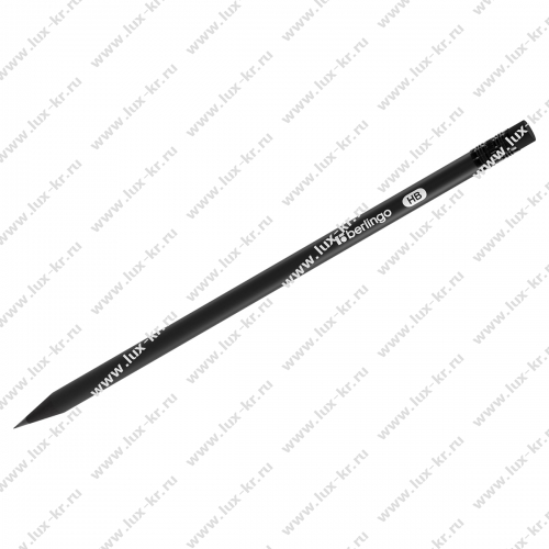 Чернографитный карандаш из черного дерева, с ластиком, с заточкой. Матовое покрытие корпуса, твердость HB, круглая форма.