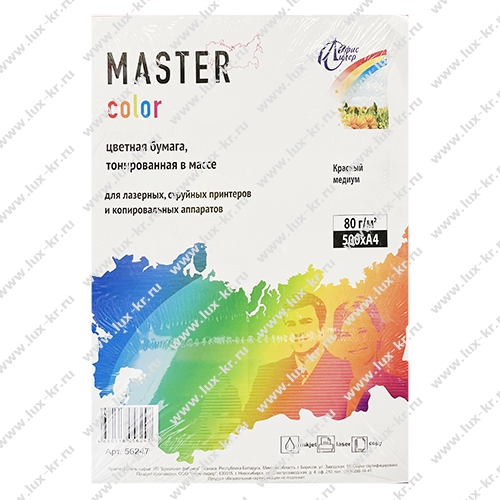 Бумага M/C А4, 500л, 80г/м2, красный медиум (аналог PI25) в пачках (56247)