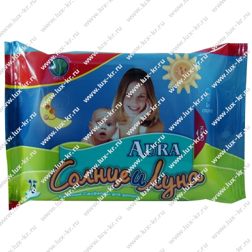 Салфетки Aura "Солнце и Луна" влажные детские. Гипоаллергенны. Без спирта. Влажные салфетки мягкие и нежные созданы для очищения нежной кожи малышей. Пропитаны очищающий веществом рН 5,5. Они прекрасно очищают и увлажняют кожу, обладают антисептическими свойствами. Не вызывают аллергию и раздражения.