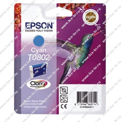 Голубой картридж Epson T0802 C13T08024010 для Epson Stylus Photo P50/PX660. Ресурс-330 стр. при 5% заполнении листа.