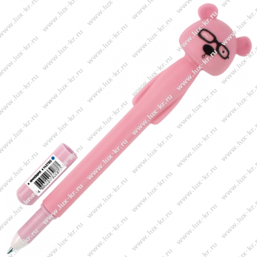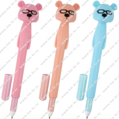 Ручка фигурная шариковая ЮНЛАНДИЯ "Мишка", мягкий силиконовый корпус, ассорти, СИНЯЯ, пишущий узел 0,7 мм, 143780