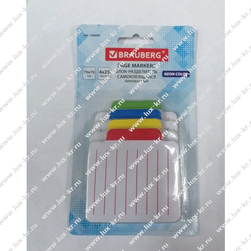 Блок-разделитель самоклеящийся (стикеры) BRAUBERG, ЛИНОВАННЫЙ, 70х70 мм, 4 цвета х 25 листов, ассорти, 126695
