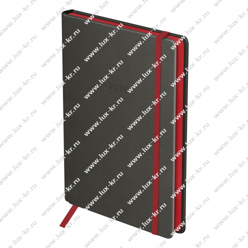 Ежедневник датированный 2026г., А5, 176л., твердый переплет, кожзам, BG "Contrast. Graphite", графитовый, цветной срез, на резинке DdA5_09467