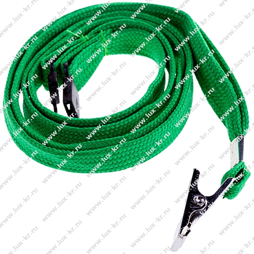 Шнурок для бейджей 45см, металлический клип, зеленый