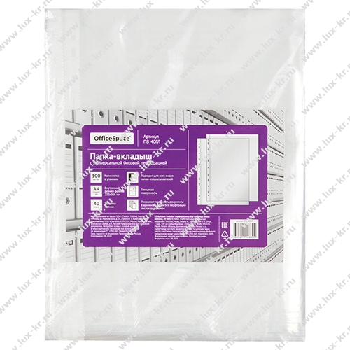 Папка-вкладыш с перфорацией OfficeSpace ПВ_40ГЛ, А4, 40мкм, глянцевая (100шт/уп)