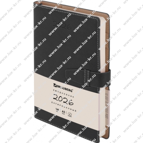 Ежедневник датированный 2026, А5, 143х218 мм, BRAUBERG "Journal", под кожу, застежка, держатель для ручки, органайзер, черный, 117382