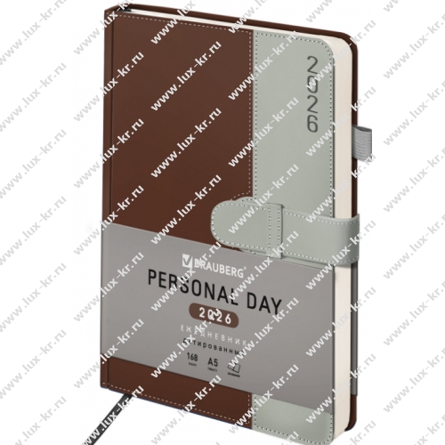 Ежедневник датированный 2026, А5, 138х213 мм, BRAUBERG "Esthetic", под кожу, держатель для ручки, застежка, коричневый/серый, 117374