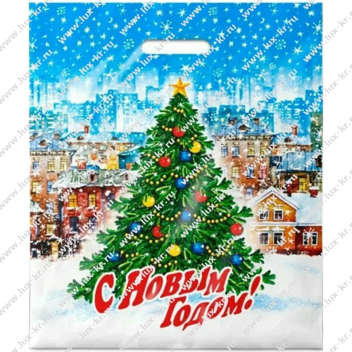 Пакет Новый Год 40х47, 45мкм с прорубной ручкой