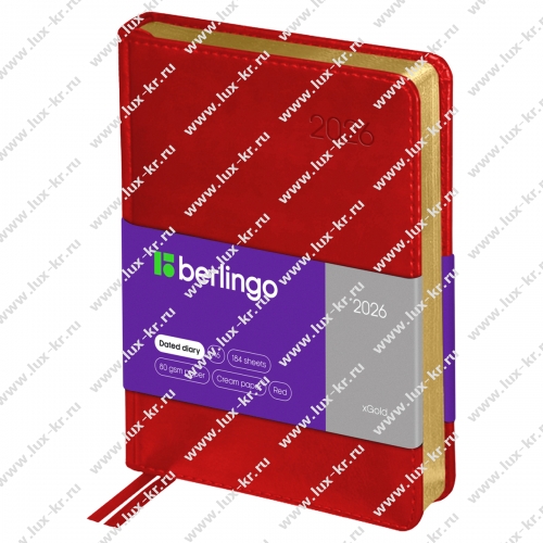 Ежедневник датированный 2026г., А6, 184л., кожзам, Berlingo "xGold", зол. срез, красный DD6_81606