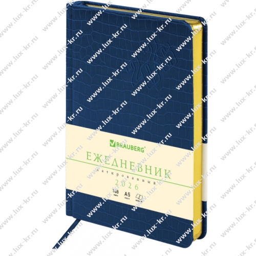 Датированный ежедневник стилизованной под крокодиловую кожу. Внутренний блок включает 168 листов тонированной бумаги плотностью 70 г/м2. Каждая страничка имеет перфорированный угол. Благодаря стандартному формату А5 (138х213 мм) ежедневник удобно использовать как в офисе, так и на выездных деловых встречах. Материал обложки насыщенного синего цвета подходит для горячего тиснения. Срез ежедневника украшен золотым фольгированием.