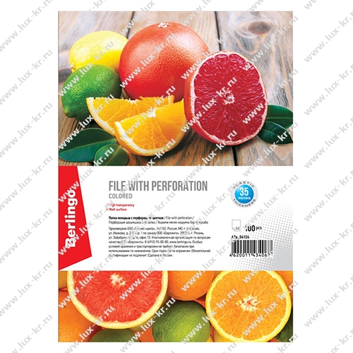 Толщина пластика - 35 мкм, обладают высокой прозрачностью, имеют универсальную перфорацию для хранения документов формата А4 в любых папках. Яркий информационный лист-вкладыш в каждой групповой упаковке (100 шт.) и логотип на боковой ленте. Матовые, цветные, ассорти в пачке.