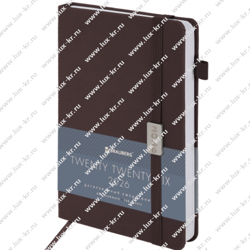 Ежедневник датированный 2026, А5, 138x213 мм, BRAUBERG "Control", под кожу, держатель для ручки, коричневый, 117122