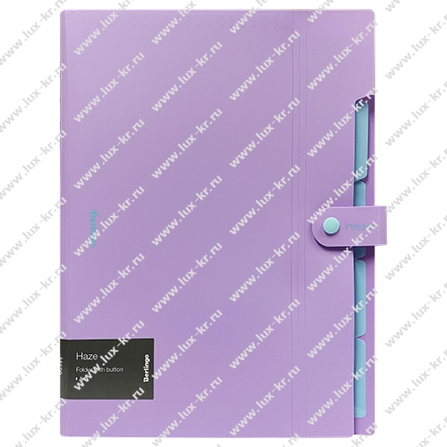 Папка пластиковая на кнопке с отделениями Berlingo "Haze" формата А4 с рисунком. Обложка с эффектом софт-тач. Цвет обложки - сиреневый. 5 внутренних отделений для удобного хранения и организации документов. Каждое отделение с индексным полем, позволяет сортировать документы по темам или алфавиту. Надежная застежка-кнопка. Контрастный голубой цвет отделений. Быстрый доступ к содержимому. Изготовлена из высококачественного полипропилена с матовой текстурой поверхности "песок", на которой не видно отпечатков пальцев и мелких царапин. Предназначена для хранения и транспортировки документов. Толщина обложки 600мкм. Вмещает до 200 листов. Размер 245*325*10.