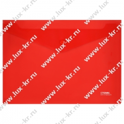 Папка-конверт на кнопке СТАММ А4, 180мкм, пластик, прозрачная, красная ММ-31025