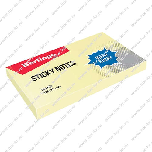 Самоклеящийся блок Berlingo "Ultra Sticky" LSn_39300, желтый пастель 125*75мм, 100л.