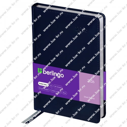 Ежедневник датированный 2026г., А5, 184л., кожзам, Berlingo "Silver Pristine", сер. срез, синий DD6_82503