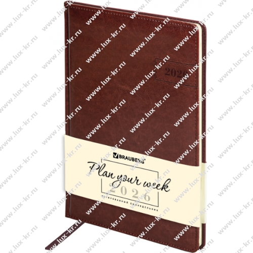 ЕЖЕНЕДЕЛЬНИК датированный 2026, БОЛЬШОЙ ФОРМАТ 210х297 мм, А4, BRAUBERG "Imperial", под кожу, коричневый, 117156