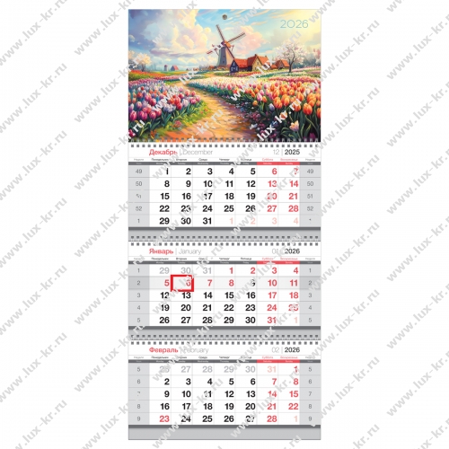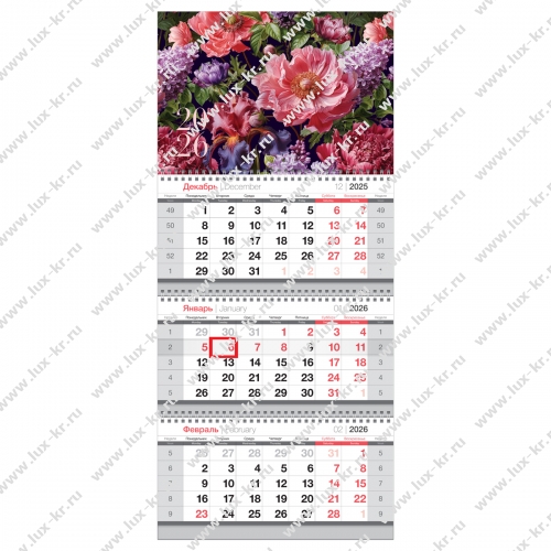 Календарь квартальный 3 бл. на 3 гр., 295*660 мм, с бегунком, 2026г.