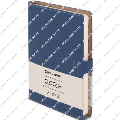 Ежедневник датированный 2026, А5, 143х218 мм, BRAUBERG "Journal", под кожу, застежка, держатель для ручки, органайзер, синий, 117379
