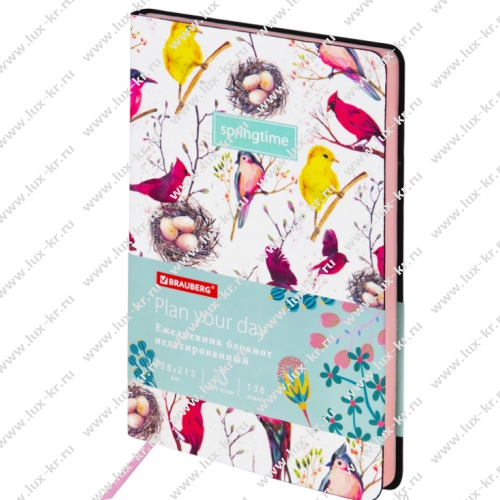 Ежедневник недатированный А5 (138х213 мм), BRAUBERG VISTA, под кожу, гибкий, 136 л., "Birds", 112021