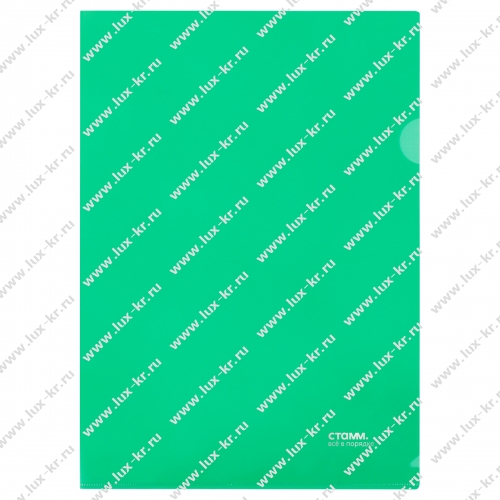Папка-уголок СТАММ А4, 180мкм, пластик, прозрачная, зеленая ММ-30945