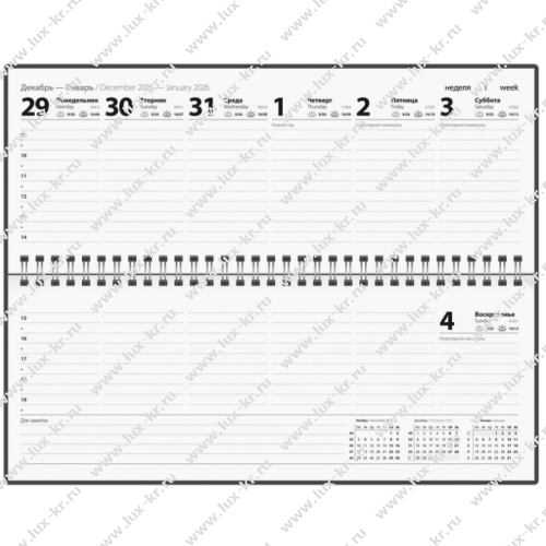 г/м2.обложка из мелованного картона. Скрепление выполнено с помощью евроспирали. Размер изделия – 285х112 мм.это компактный еженедельник с горизонтальной или вертикальной ориентацией. Все дни недели в планинге расположены на одном развороте.
