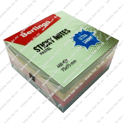 Блок бумаги для записей с клеевым краем Berlingo Ultra Sticky отлично подойдёт для сохранения важной информации. Плотность бумаги для заметок составляет 75 г/м2. Размер листа в блоке для заметок 75*75 мм. В блоке 400 листов 4-х пастельных цветов. По 100 листов каждого цвета: желтый, зелёный, розовый, голубой. Блок квадратной формы изготовлен с использованием качественного клеевого состава, который позволяет не оставлять следов на поверхности и многократно использовать лист. Повышенная клейкость – 25 Н/м. В блоке для записей используется специальное покрытие, предотвращающее закручивание, оптимизированное для комфортного письма. Блок для записей упакован в прозрачную пленку с возможностью быстрого открытия.