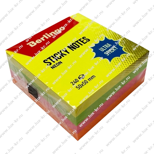 Cамоклеящийся блок Berlingo "Ultra Sticky" LSn_40102, 50*50мм, 240л, 4 неоновых цвета